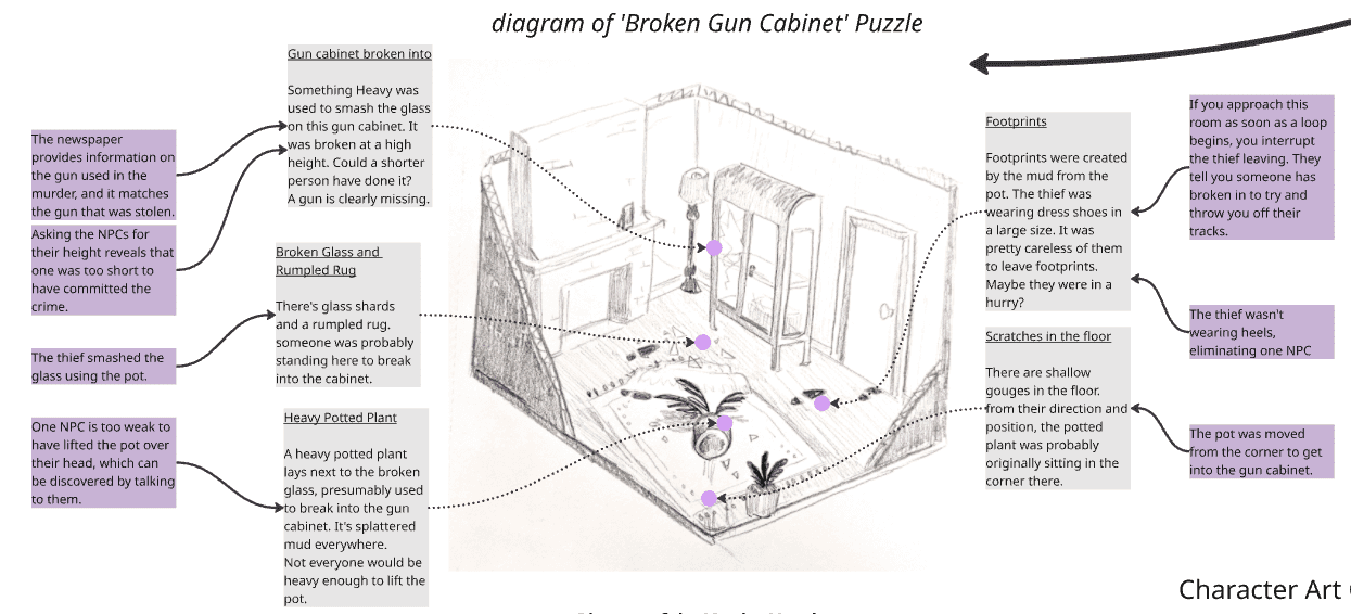 Developed design documentation for the primary puzzle by creating an early diagram with detailed notes.