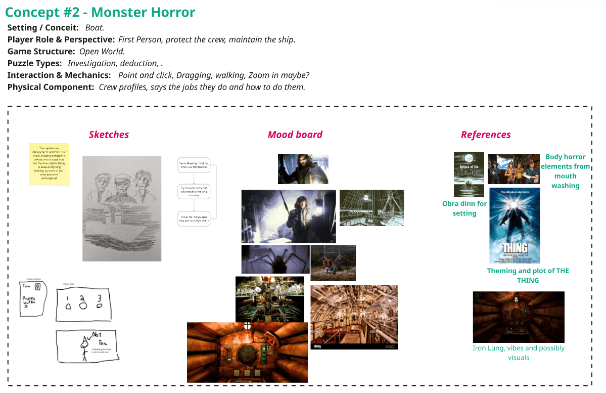 This resulted in several very strong ideas, but a lack of clear direction for the game's themes, mechanics, and style. Through a phase of detailed feedback and review from other designers outside our team, we eventually settled on one idea.